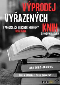 V knihovně probíhá od 6. října výprodej knih, které byly v průběhu roku vyřazeny z fondu knihovny. Můžete zde najít beletrii a naučnou literaturu pro dospělé i dětské čtenáře. Cena knih je 5 Kč za kus. Výprodej probíhá od 6. října do konce měsíce nebo do vyprodání všech knih.